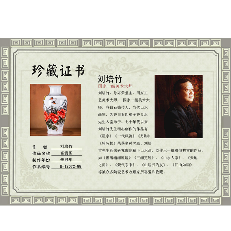 Liu Baizhu Pure hand - drawn high - grade large vase parts of the national level craft artist Liu Peizhu