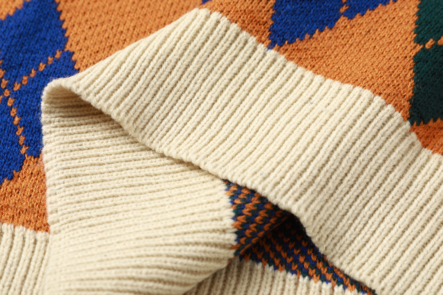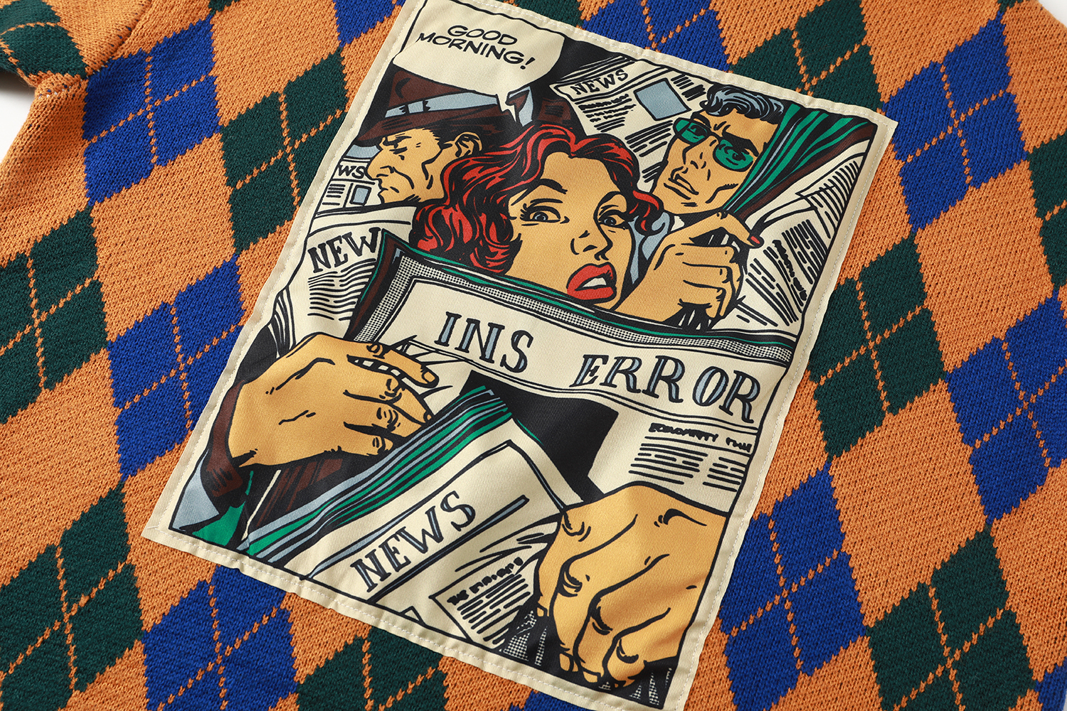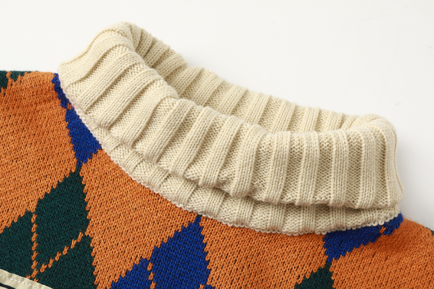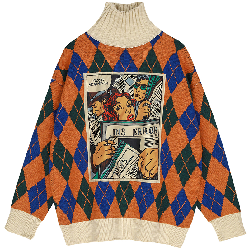 VEGA CHANG Languid Sweater Women's Fall/Winter 2021 New High Neck Cartoon Print Diamond Check Panel knit