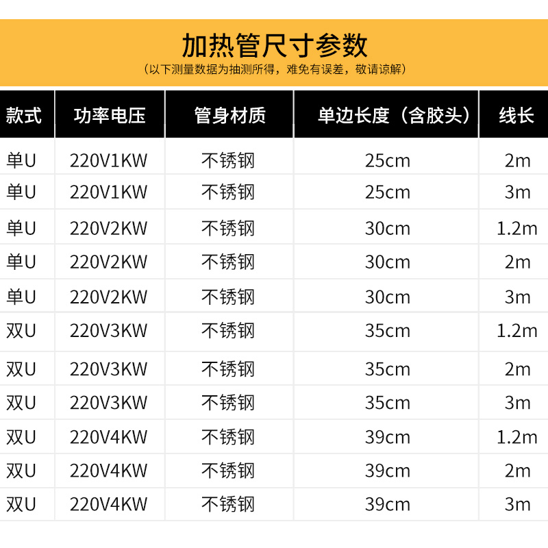 304 thickened double U380V10Kw line 5 meters 304 thickened double U380V12Kw line 5 meters 304 thickened double U380V12Kw line 2 meters 304 thickened double