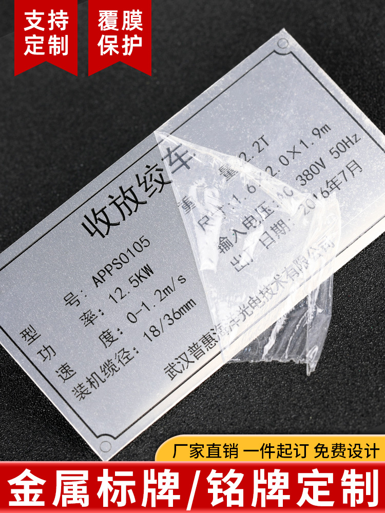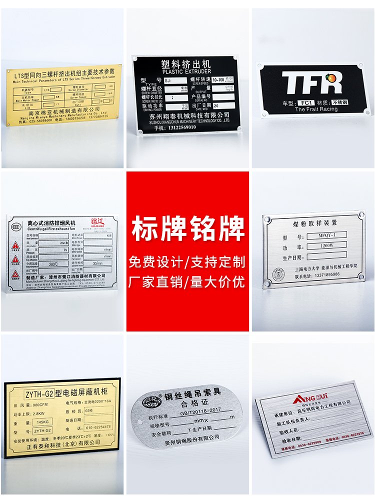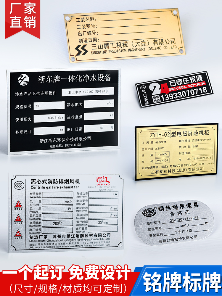 Metal signage custom aluminum screen printing equipment stainplate designation corrosion valve label laser engraving copper nameplate motor distribution box cabinet furniture plastic LOGO production PVC plastic