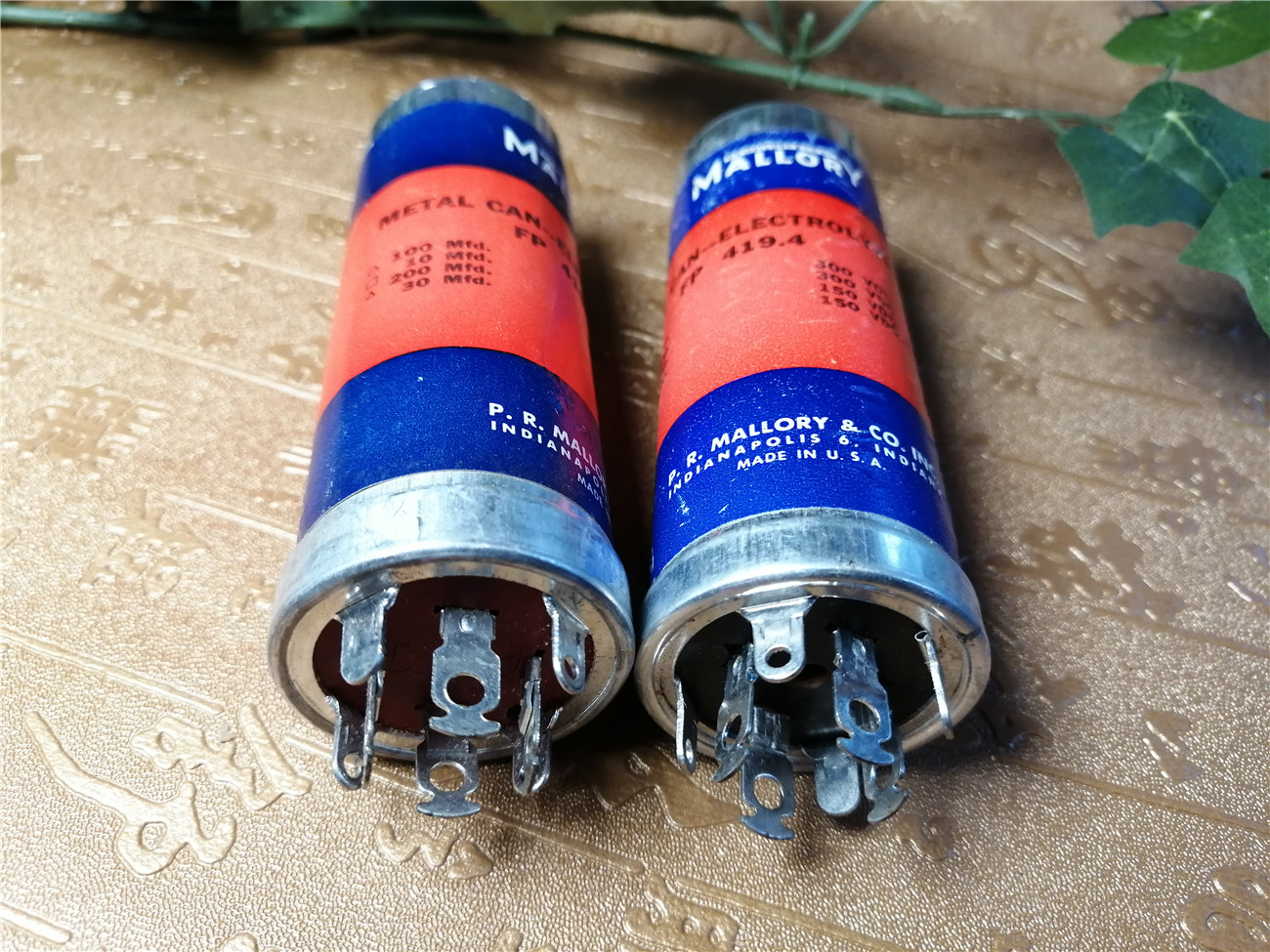 Moroli red and blue sticker MALLORY FP 100UF 300V antique pre-filter capacitor pair price
