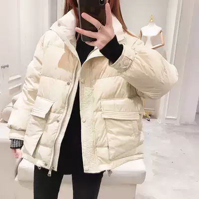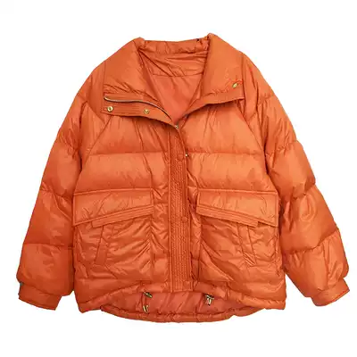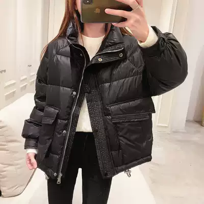 Down jacket 2021 new trendy women's winter clothing Korean loose drawstring stand-up collar thickened short bread jacket