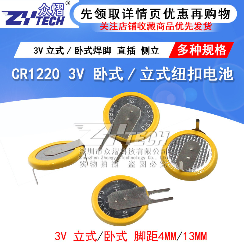 CR1220 3V horizontal button battery with a pitch of 13MM (2 pieces per piece) CR1220 3V vertical button battery with a pitch of 4MM (2 pieces per piece)