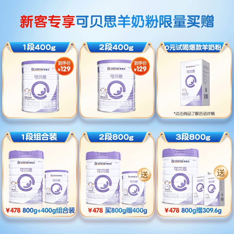 (Exclusive to new customers) Hopson Kebeisi Goat Milk Powder Pure Goat Milk Protein Baby 1 Stage 400G