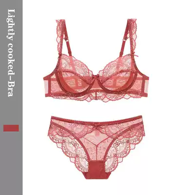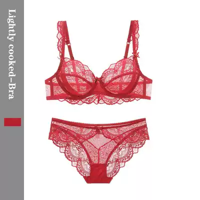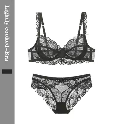 (Light cooked) Sexy big breasts European and American lace classic perspective ultra-thin underwear set large size underwear women's double-breasted buckle