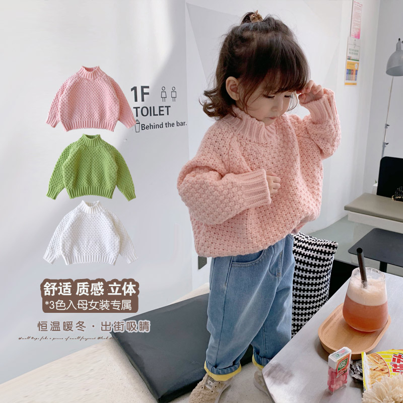 Fall in love with pretty girl girl sweater autumn and winter 2020 new western style parent-child clothes baby thickened thick needle small high collar Z