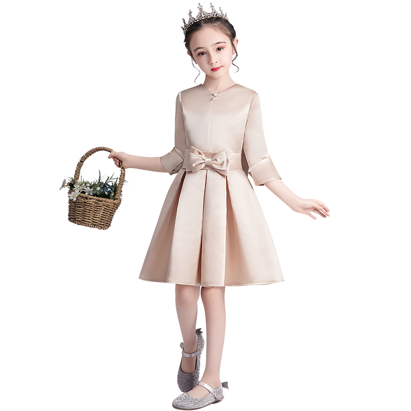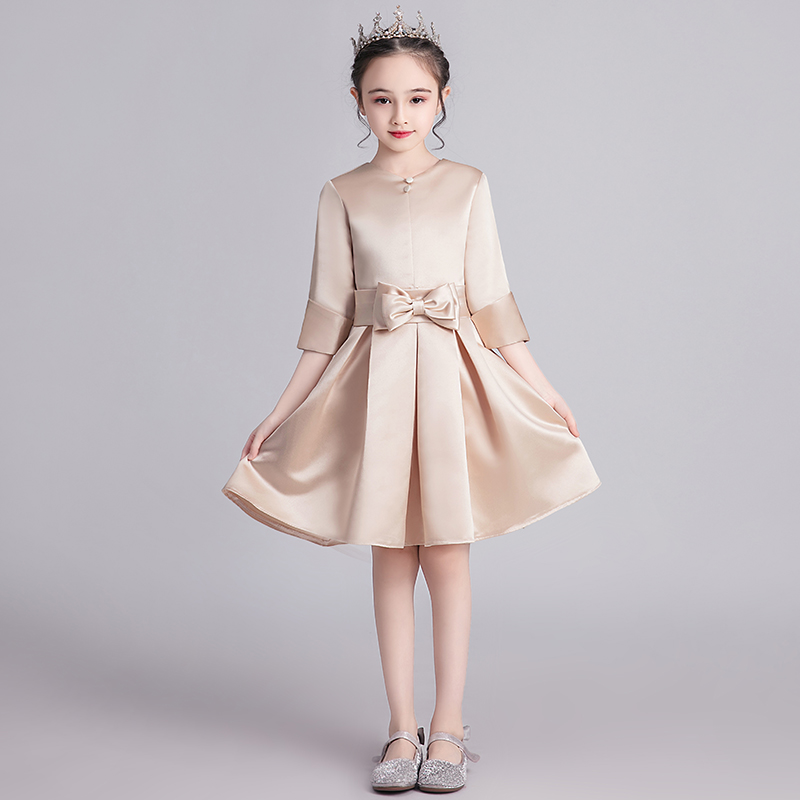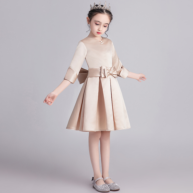 Girls' evening dress 2020 new spring champagne children's dress temperament girl piano performance dress autumn and winter
