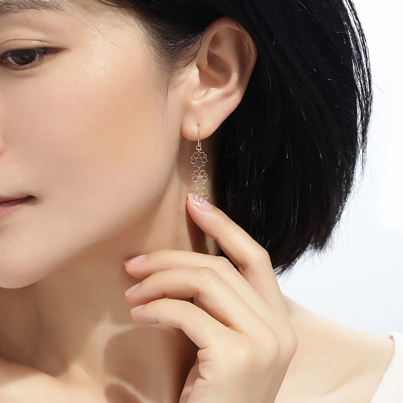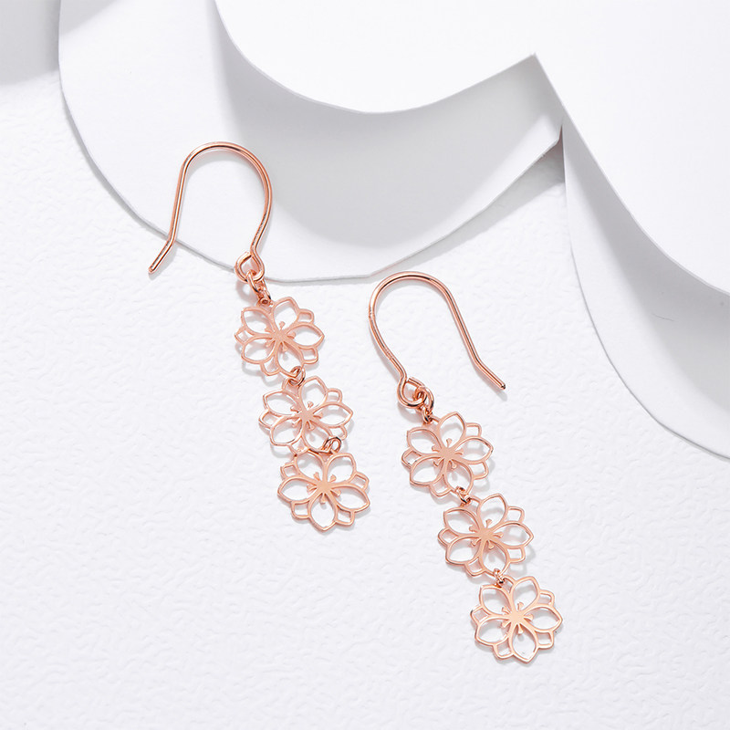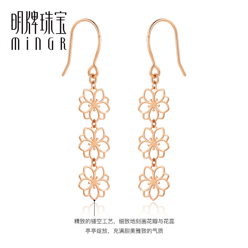 Ming brand jewelry 18K gold earring color gold rose gold hollow cherry blossom peach blossom earrings earrings CSH0174 pricing