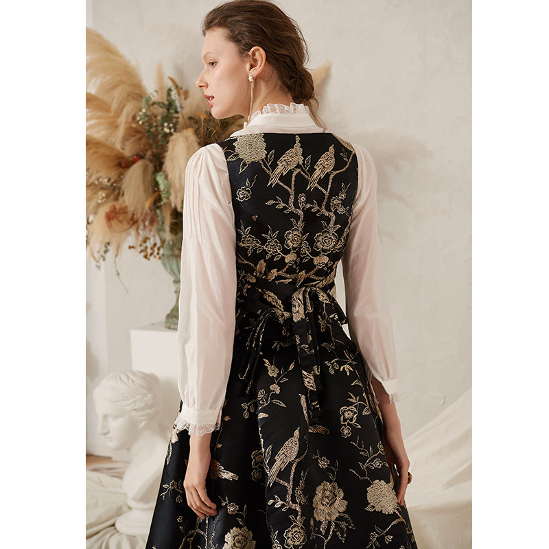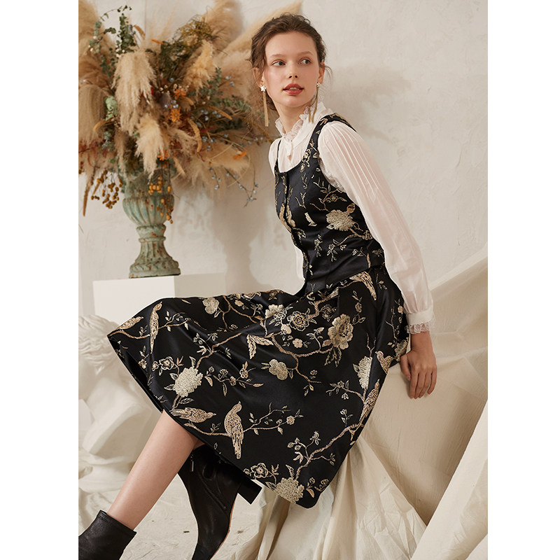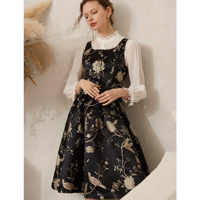 Summer 1 DU Home Custom Embroidery Retro Palace Tints Wind Improved Horse Chia Type half skirt suit Q