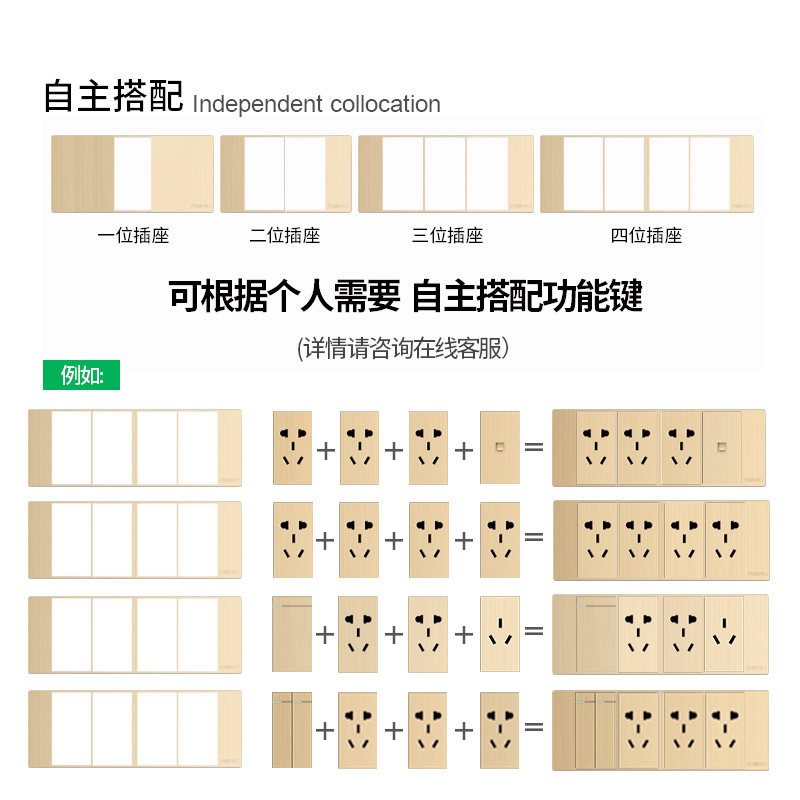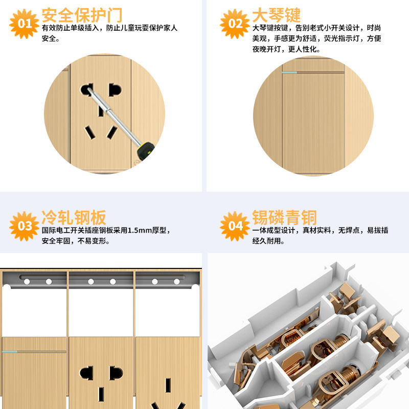 One opening single double cut universal switch one with two opening single double cut universal switch One 5-hole socket One 16A three-hole socket One TV socket One phone socket One computer socket Two opening two
