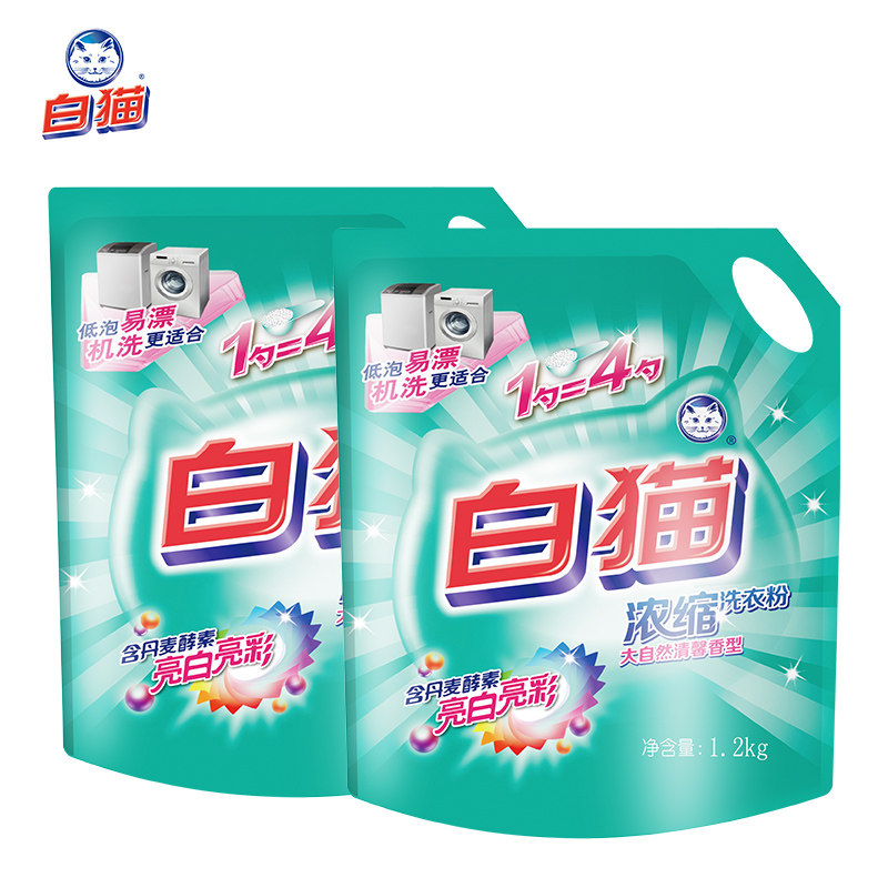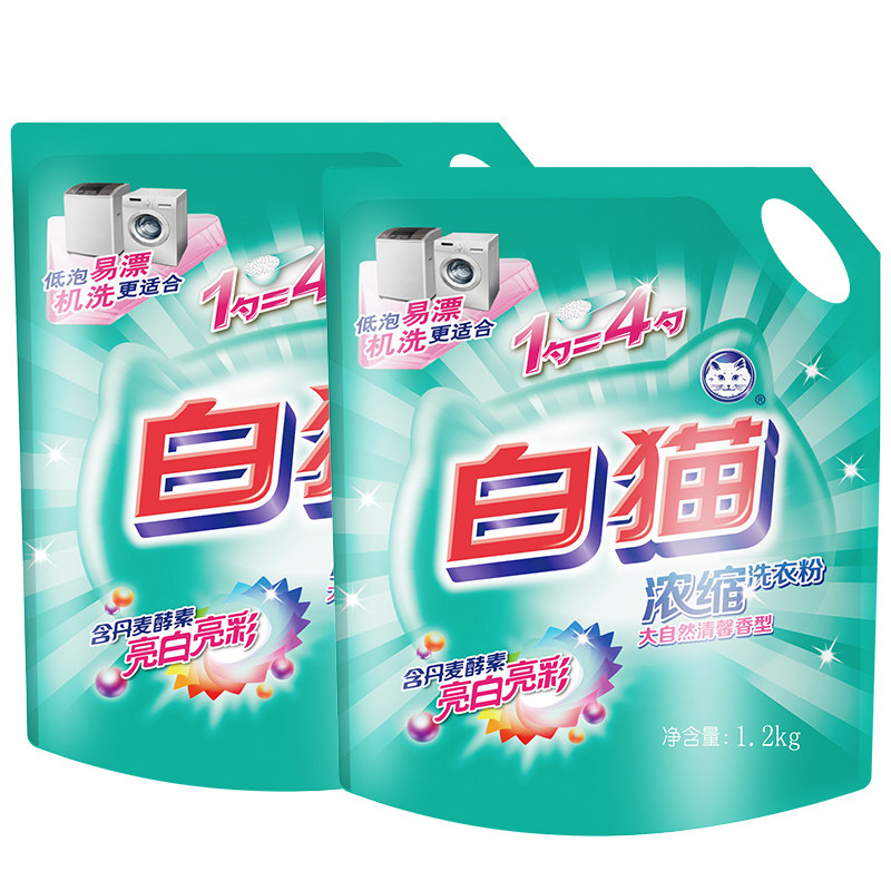 White Cat Concentrated Washing Powder Bagged Home Dress Official Clothes To Stain Machine Wash Wash 1 2kg * 2