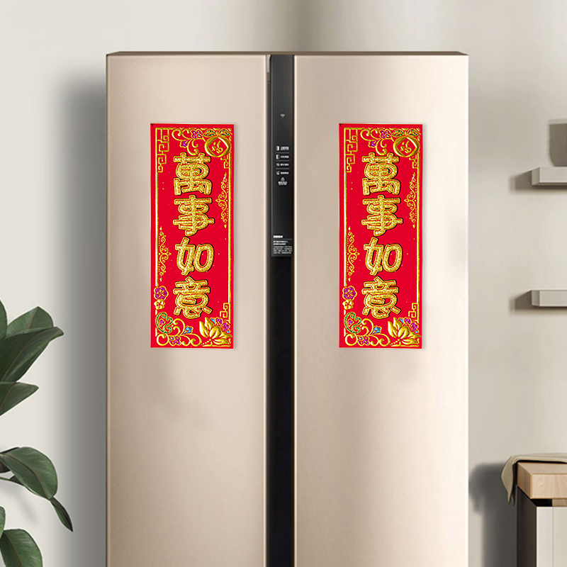 Start of the Great Jifu Character New Year's New Year Decorative Supplies Small Spring Couplets Four Characters A Spring Festival Gate Creative Vertical Link Door Sticker-Taobao