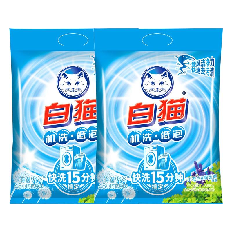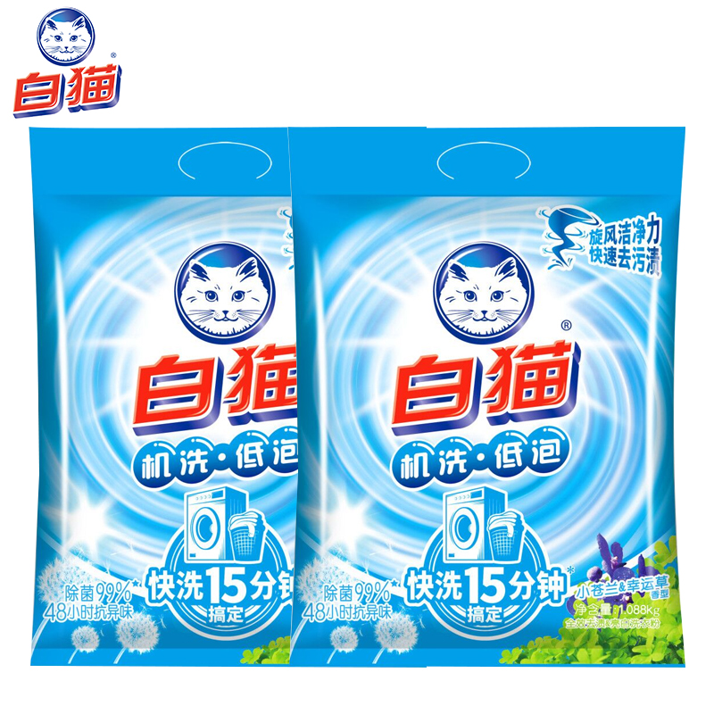 White Cat Laundry Powder Home Machine Hand Wash Low Foam Sterilization Anti-Odor Stain Removal Bright White 1 088kg*2 Bags - Taobao