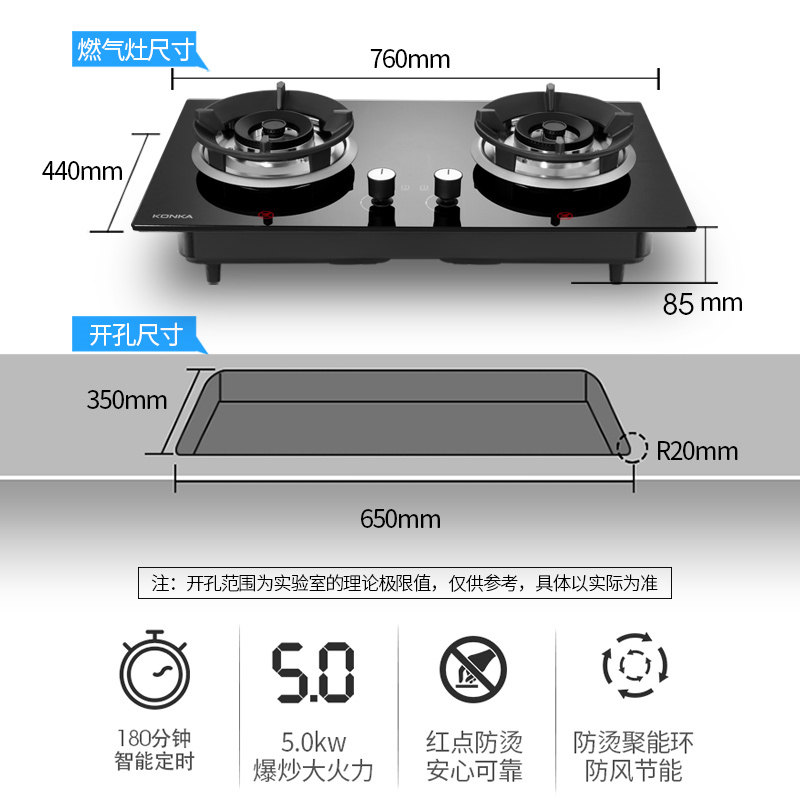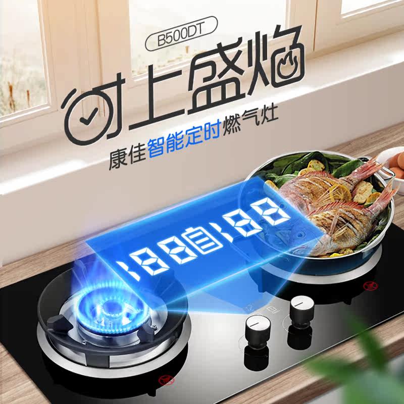 Kangjiagas stove Double-mouth gas stove Home timed energy saving gas Desktop gas cooker Embedded Mengfire liquid gas stove