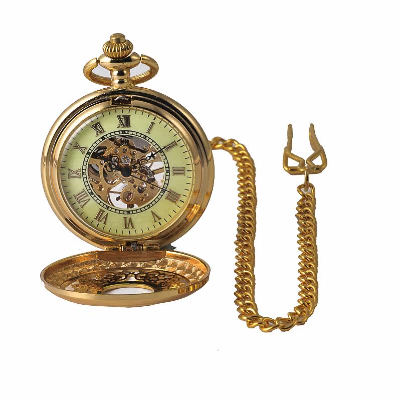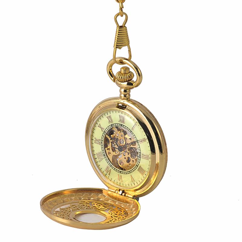 Golden Mechanical Watch Nostalgic Retro Flip Mechanical Pocket Watch Necklace Male and Female Numbers 8935