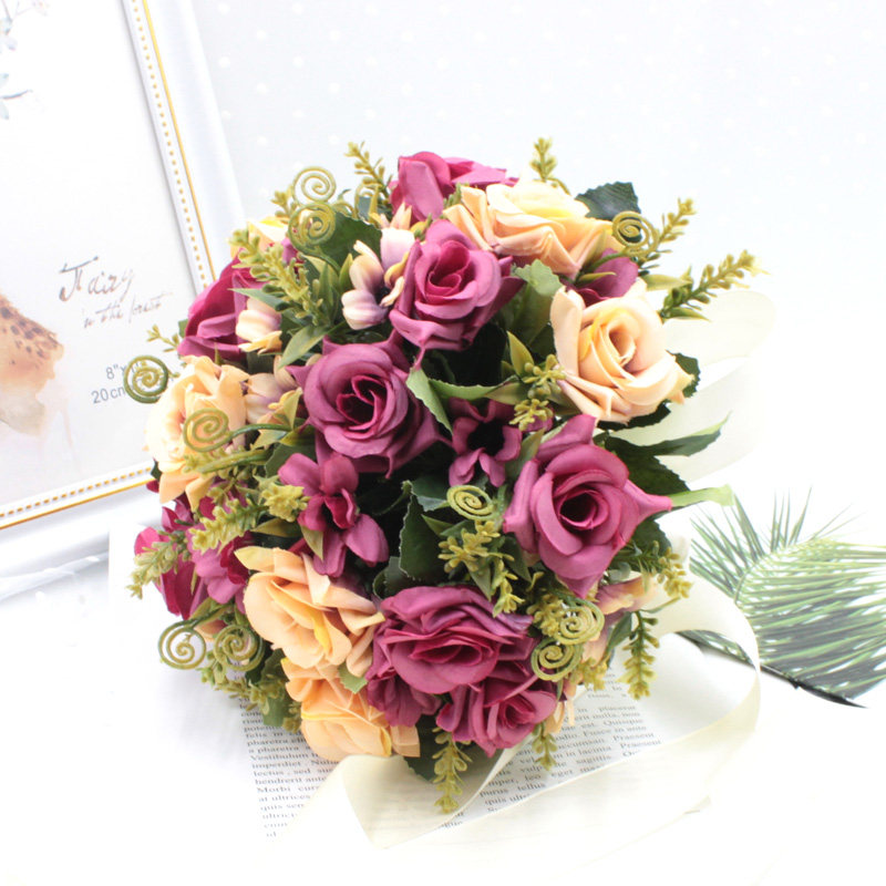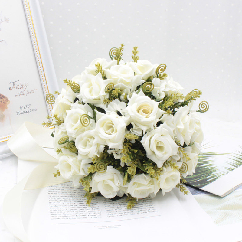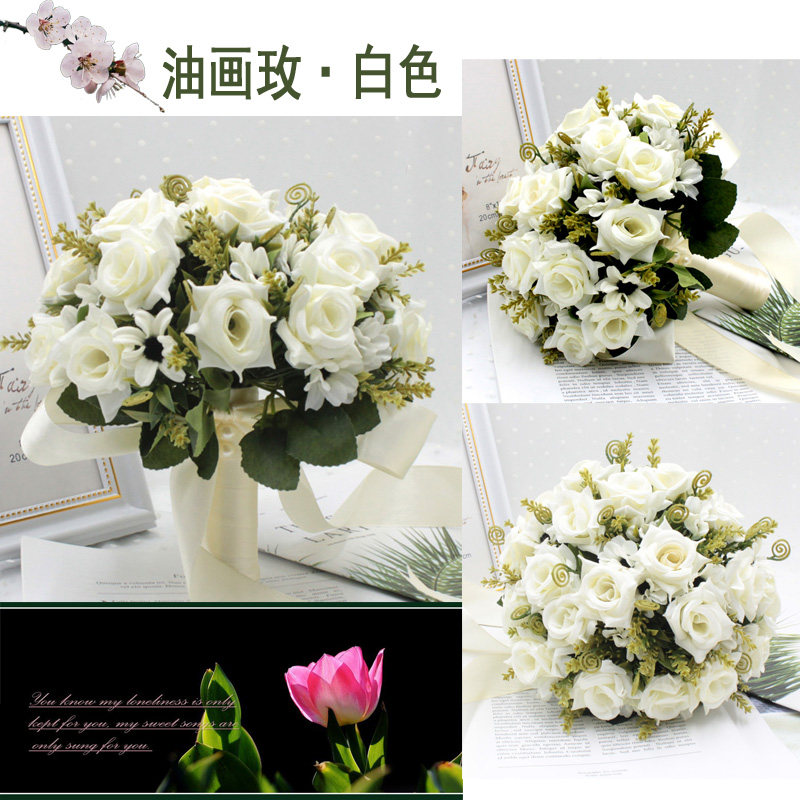European-style hand holding flower simulation red and white rose wedding hand holding flower bride hand holding flower small fresh Korean hand throwing flower