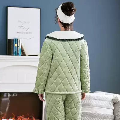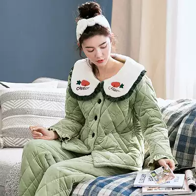 Antarctic pajamas female autumn and winter coral velvet thickened and velvet three-layer cotton-padded jacket winter ladies home clothes flannel