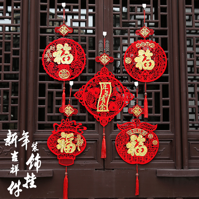 New New Year Decorative Windows Flowers Fu Calligraphy Jo moving door Fodoor paste Pendant pendant Spring Festival indoor entrance door arrangement dress-Taobao