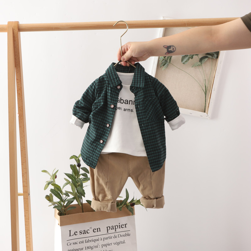 2020 baby boy children Spring and autumn cash in handsome checkered shirt baby Fashion pure cotton spring blouse jacket