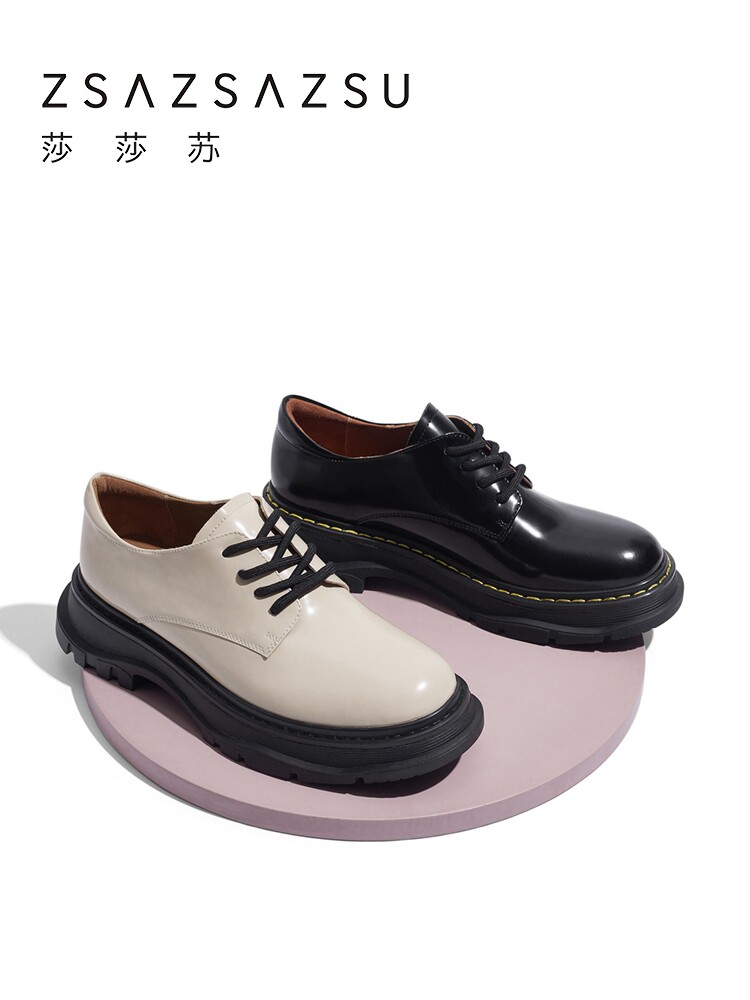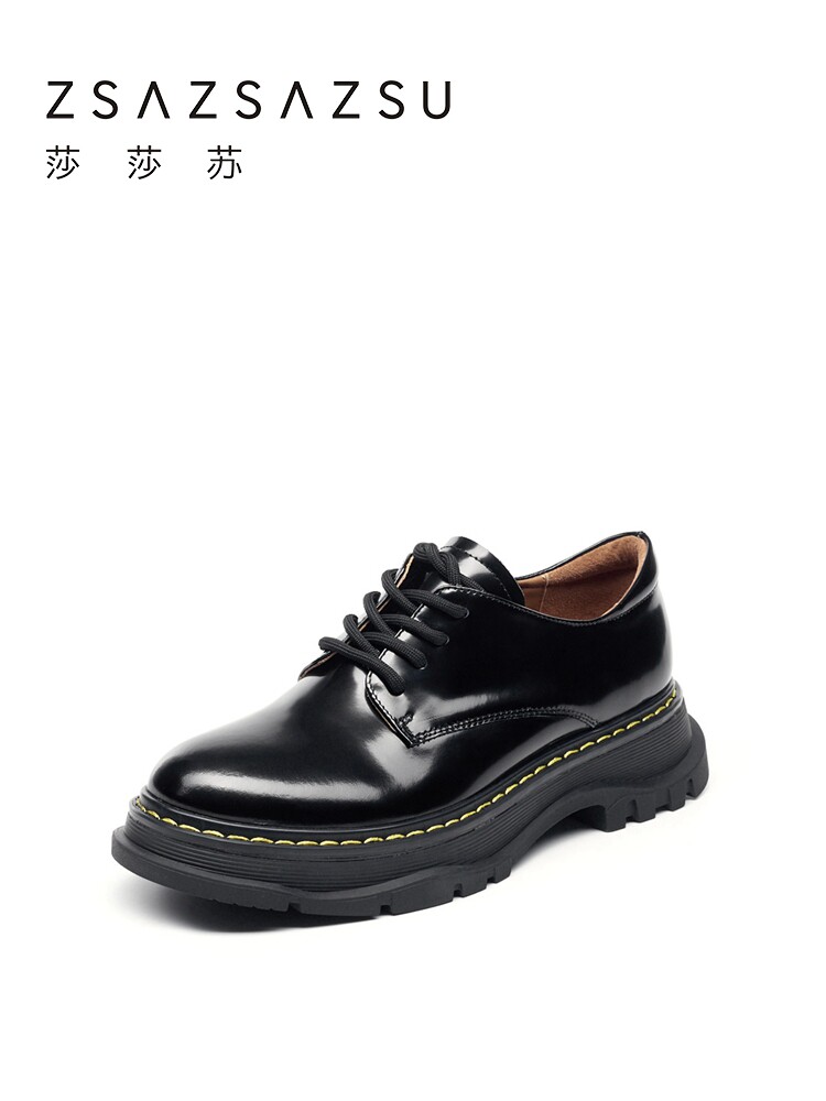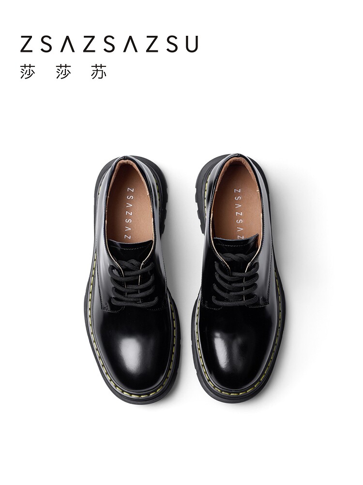 Sasa Su Chunqiu New British Style Round Toe Small Leather Shoes Soft Black Deep Mouth JK Uniform Shoes Single Shoes Women's Thick Bottom