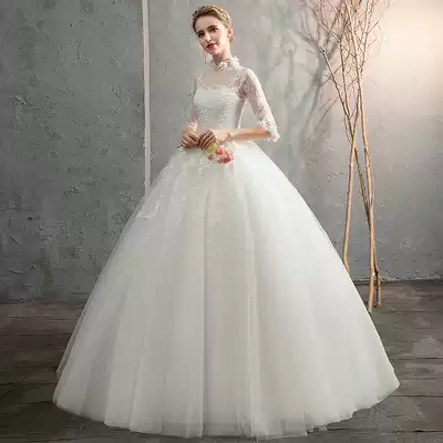 Super fairy bride simple atmosphere main wedding dress 2021 new forest dreamy little man Qi long-sleeved thick arm cover