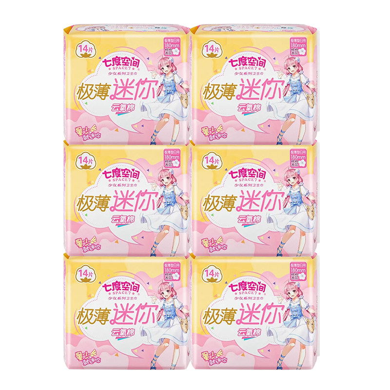 Seven degrees of space sanitary towel girls pure cotton special mini sanitary towel 6 package combination