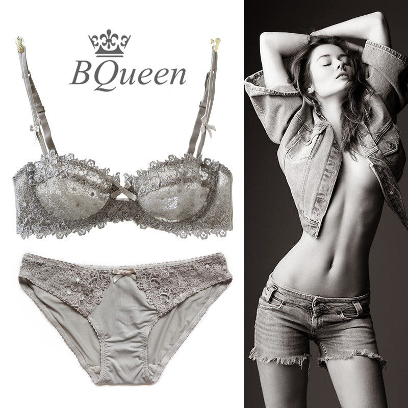 Transparent bras full underwear women's small breasts gather sexual confusion thin lace perspective ultra-thin sexy bra sex