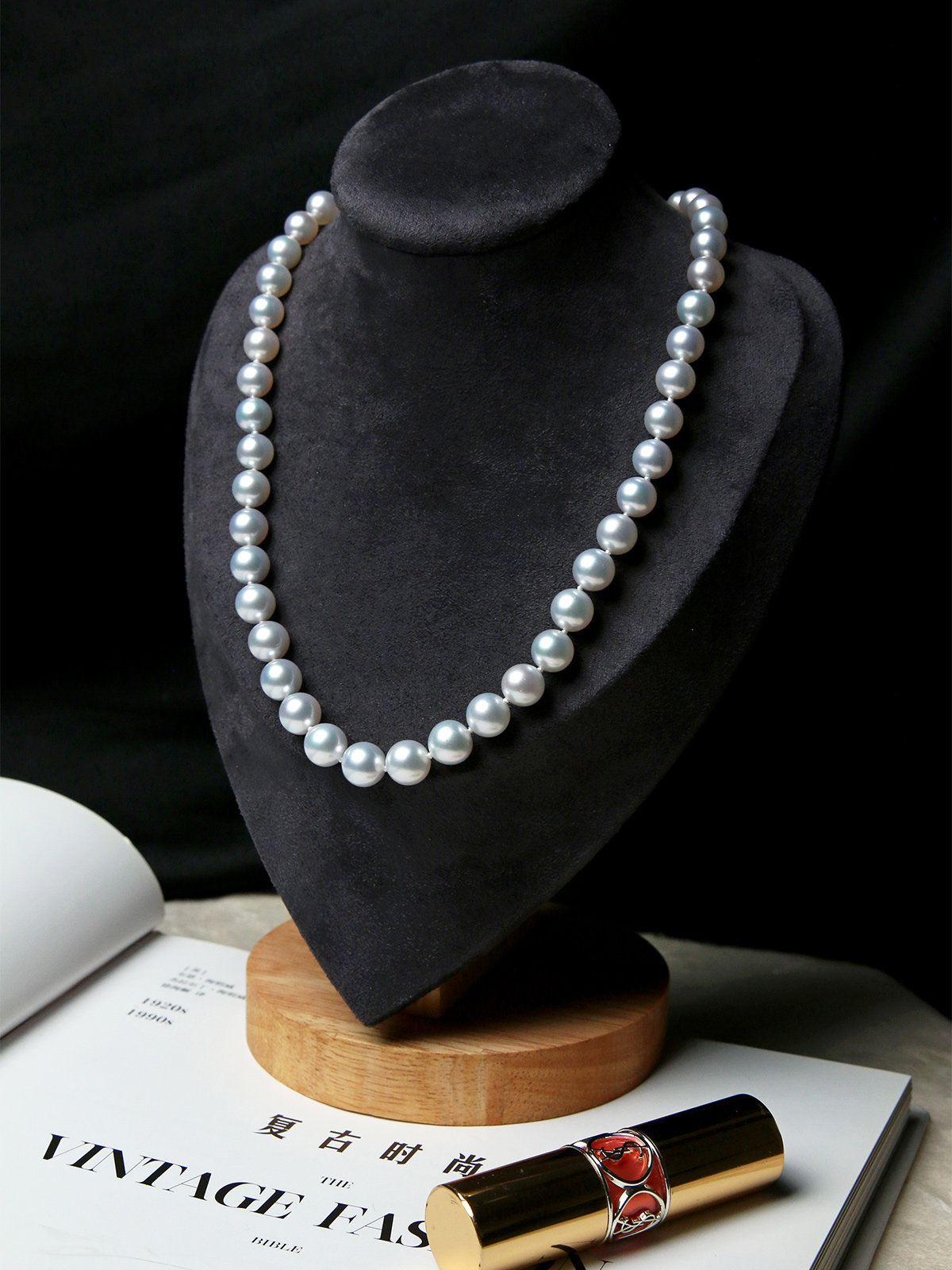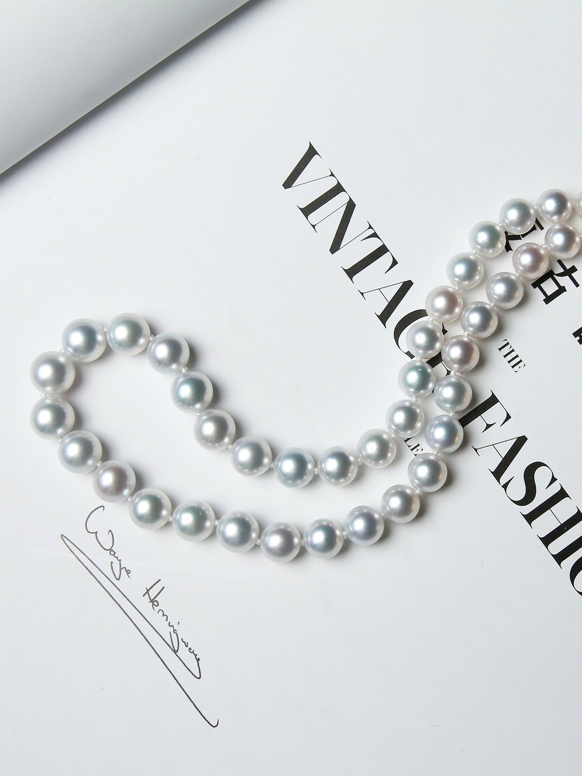 A6 Chinese Tanksmith language 8-9mm natural sea water white pearl 18K gold necklace Australia white beads