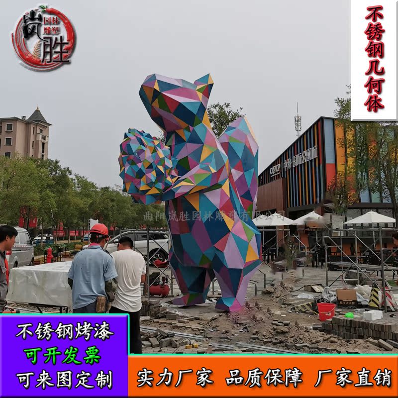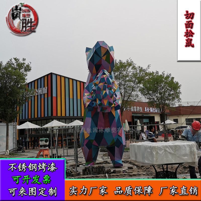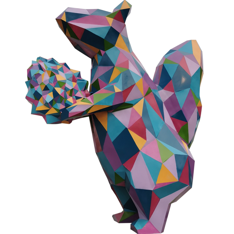 Stainless steel geometric squirrel abstract section animal color steel sculpture real estate park Meichen large geometric ornament
