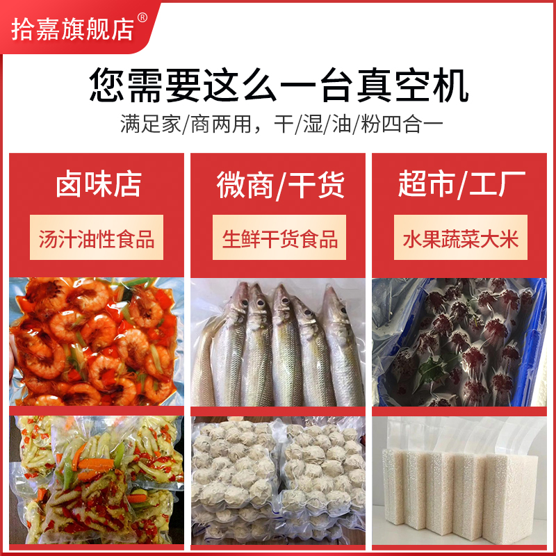 Shijia automatic rice vacuum rice brick packaging machine Commercial grain tea emptying machine Household cooked food packing sealing machine Sealing machine Dry and wet dual-use