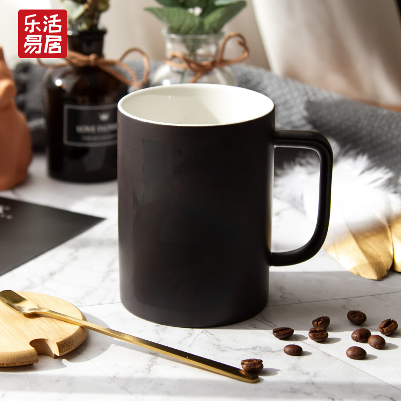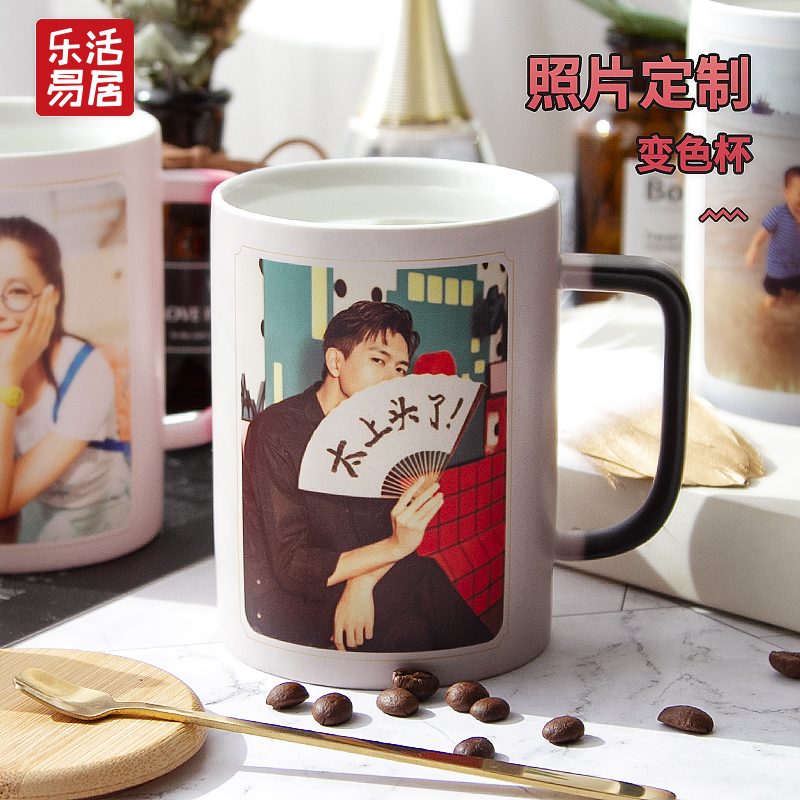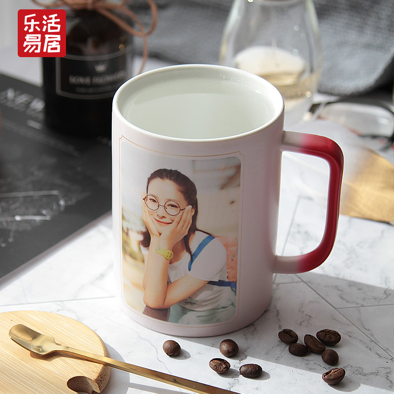 Creative Hot Water Catch-up Warm Discoloration Cups Ceramic Water Cups Print Photo Diy Customize Lovers Mark Cups With Lid Spoon
