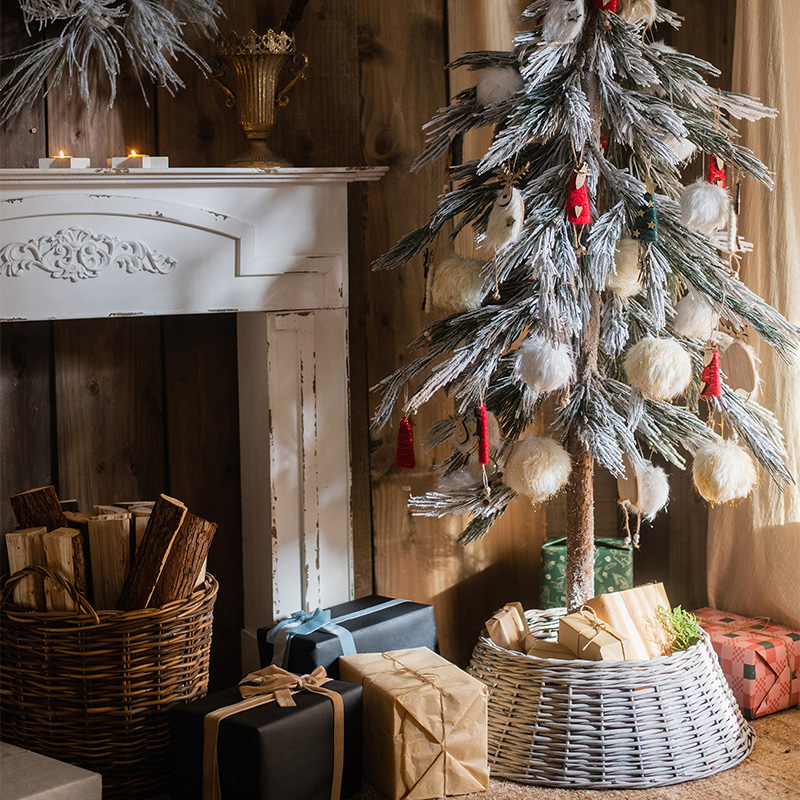Christmas tree skirt with base handmade art willow weaving Christmas decorations home scene arrangement
