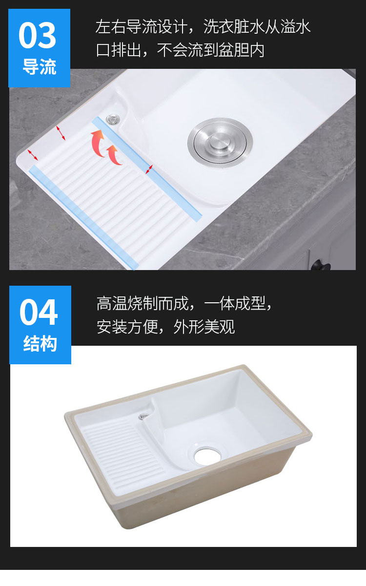 Laundry sink Balcony Home ceramic under-table basin Laundry basin comes with washboard Laundry sink Embedded single sink Wash basin