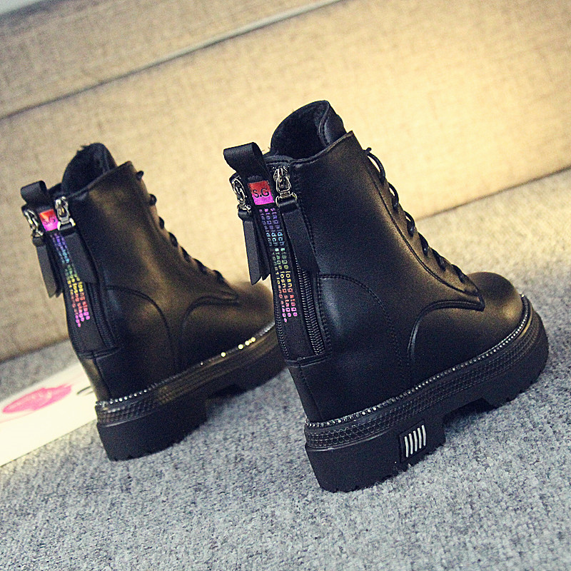 Inside heightening rear pull chain dazzling water drill short boots women 2021 springtime thick bottom ins slim boots with velvety boots for women boots