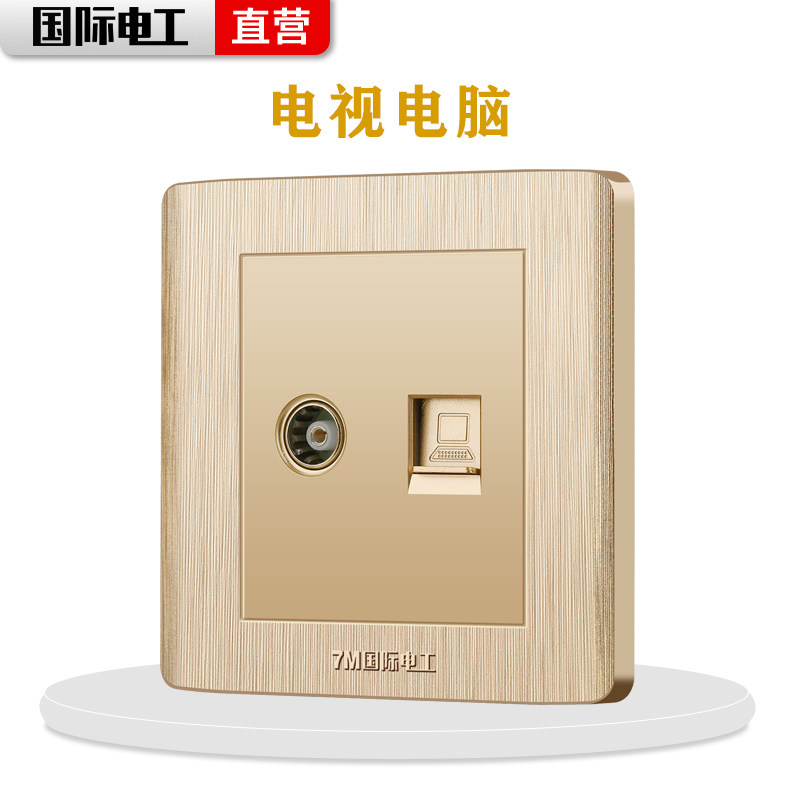 International electrician type 86 open socket Wall hidden champagne gold panel TV computer socket TV network cable socket