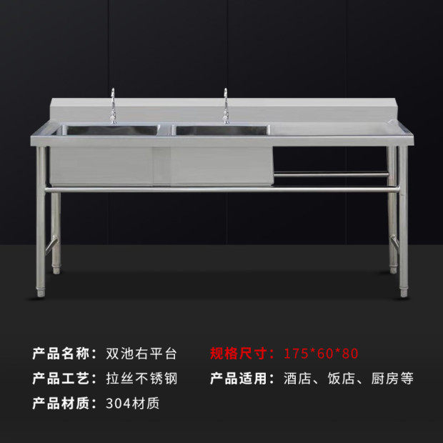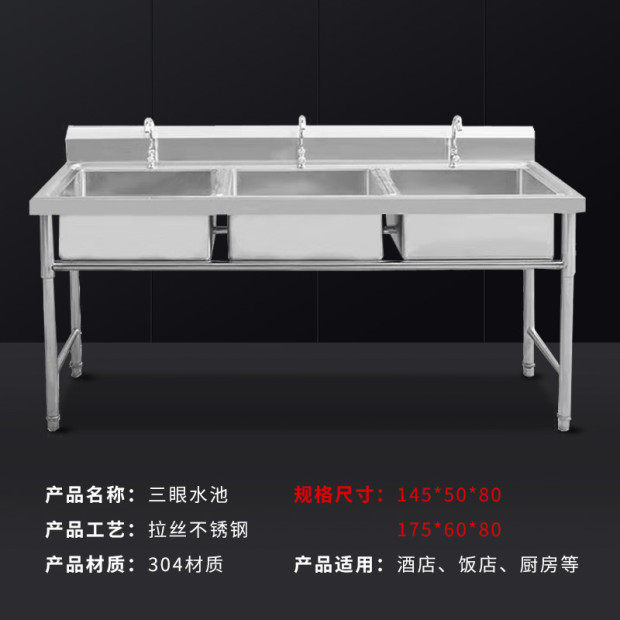 Custom 304 Commercial Stainless Steel Sink Pool Double Sink Platform Three Sink Wash Basin Dish Kitchen Household Bracket