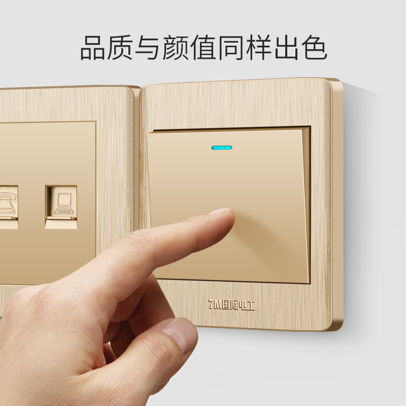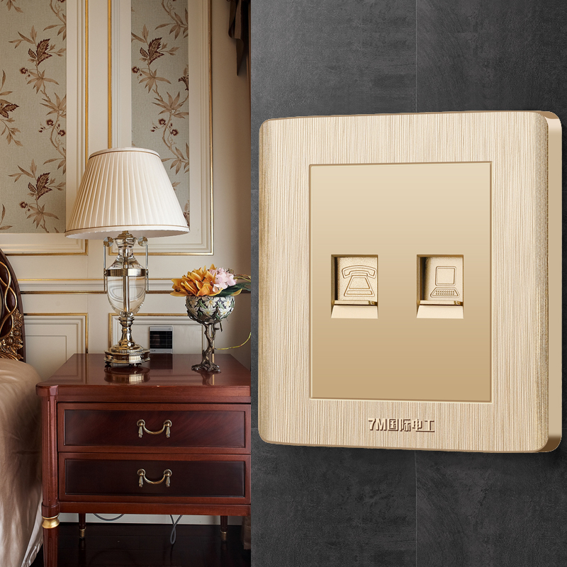 International electrician type 86 wall switch socket panel Champagne gold concealed two-digit information socket Computer telephone