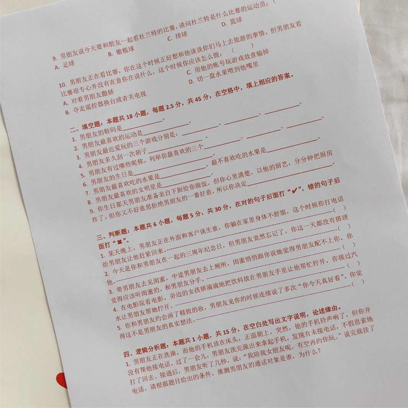 Douyin with the same girlfriend girlfriend test paper boyfriend test paper creative novelty couple test paper birthday gift