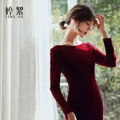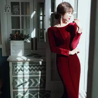 Evening dress temperament female wine red fish tail dress toast bride 2021 New banquet host can wear winter