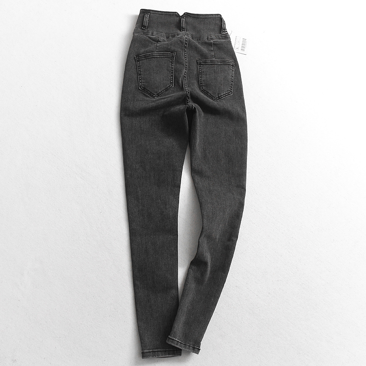 A512 Women Dress Winter New Pure color Three-grain buckle High waist and body suede Thickened Smoke tube Jeans Lady Jeans