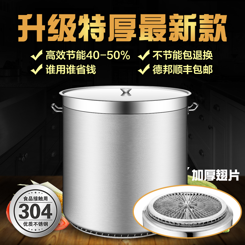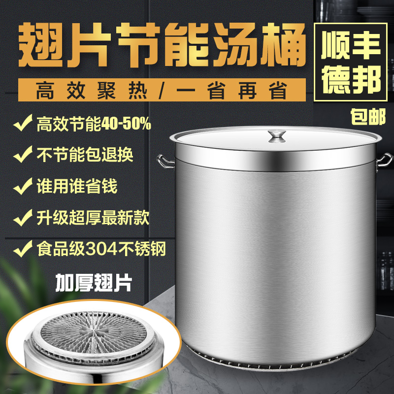 Fin energy-saving high pot Stainless steel barrel round barrel with lid composite bottom soup pot Commercial large capacity thickened braised bucket braised meat