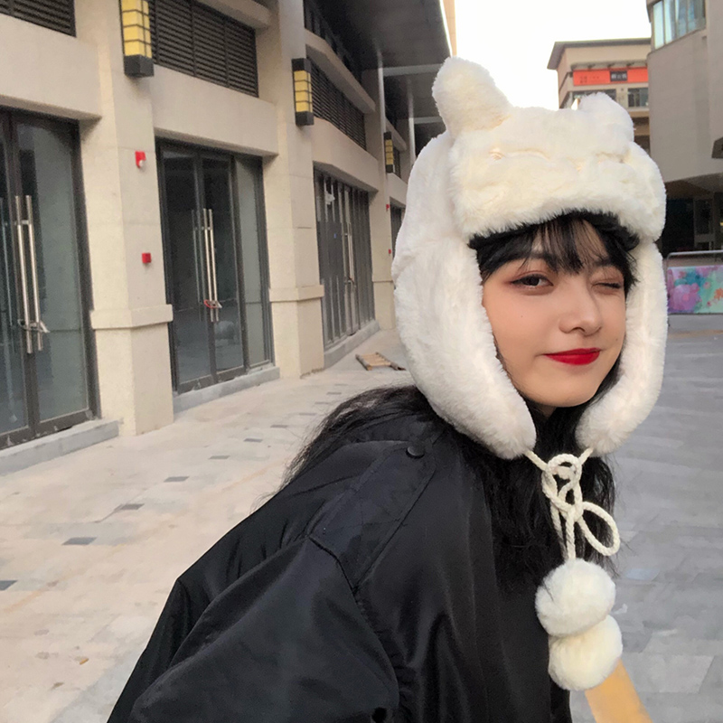 Hat women's Lei Feng hat men's winter Korean version of the ear cold hat winter cycling ear protection thickened windproof warm cute
