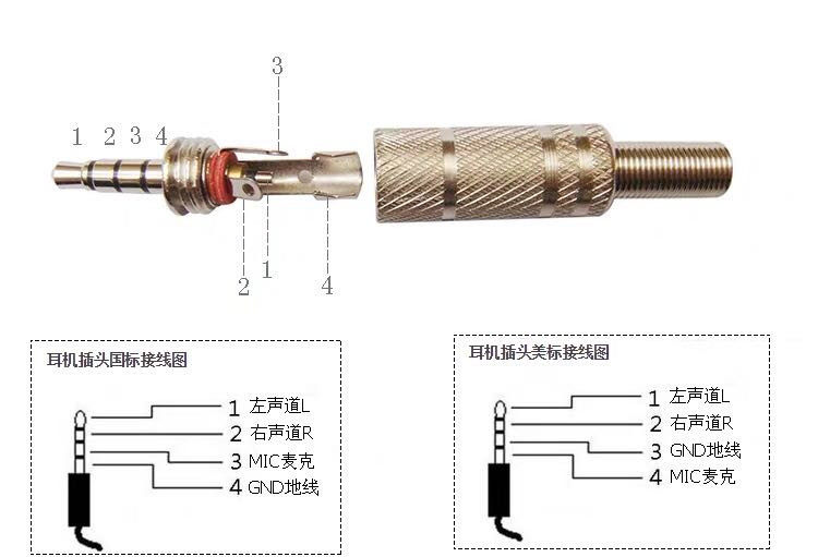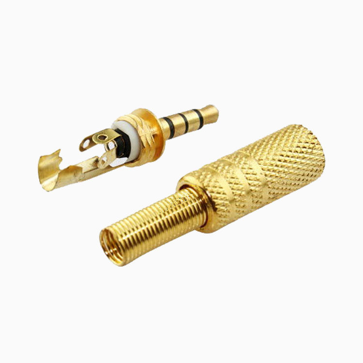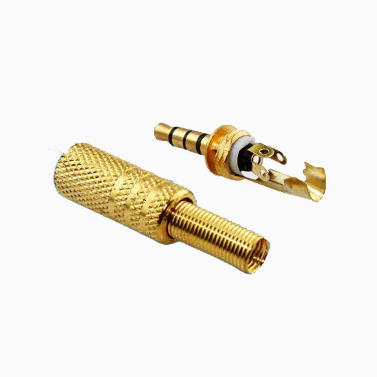 Gilded mobile phone 3 5mm plug Four-section free welding dual track headphones with wheat output audio wiring public head