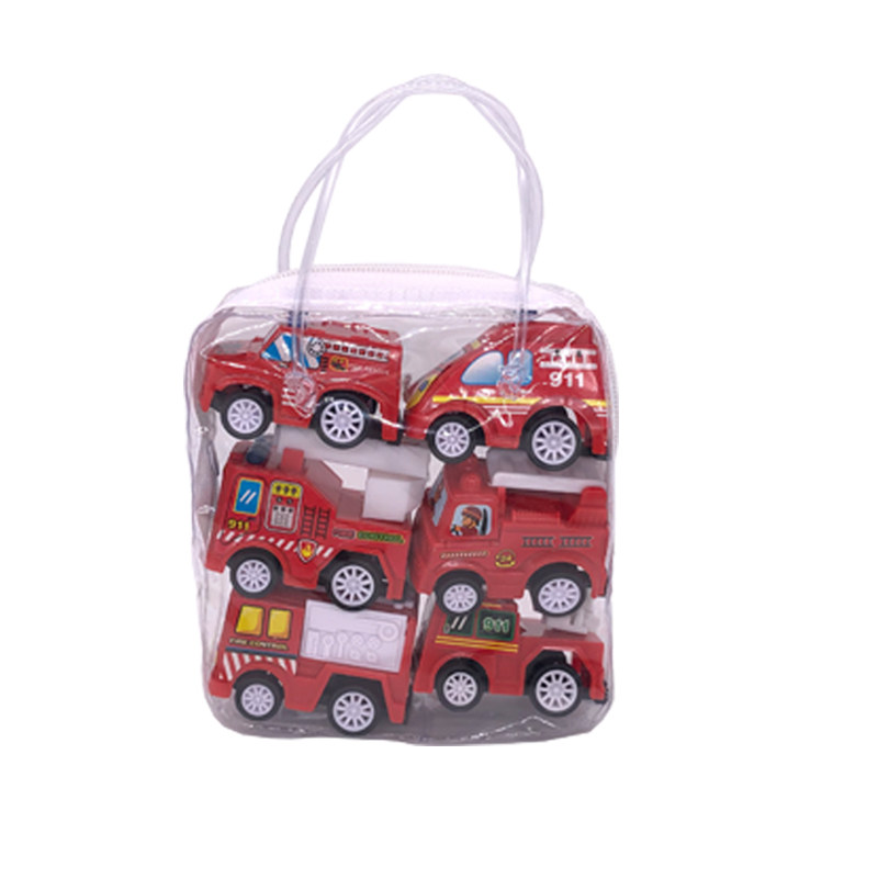 1 pack of 6 (small car models) 1 pack of 6 (engineering car models) 1 pack of 6 (fire truck models)
