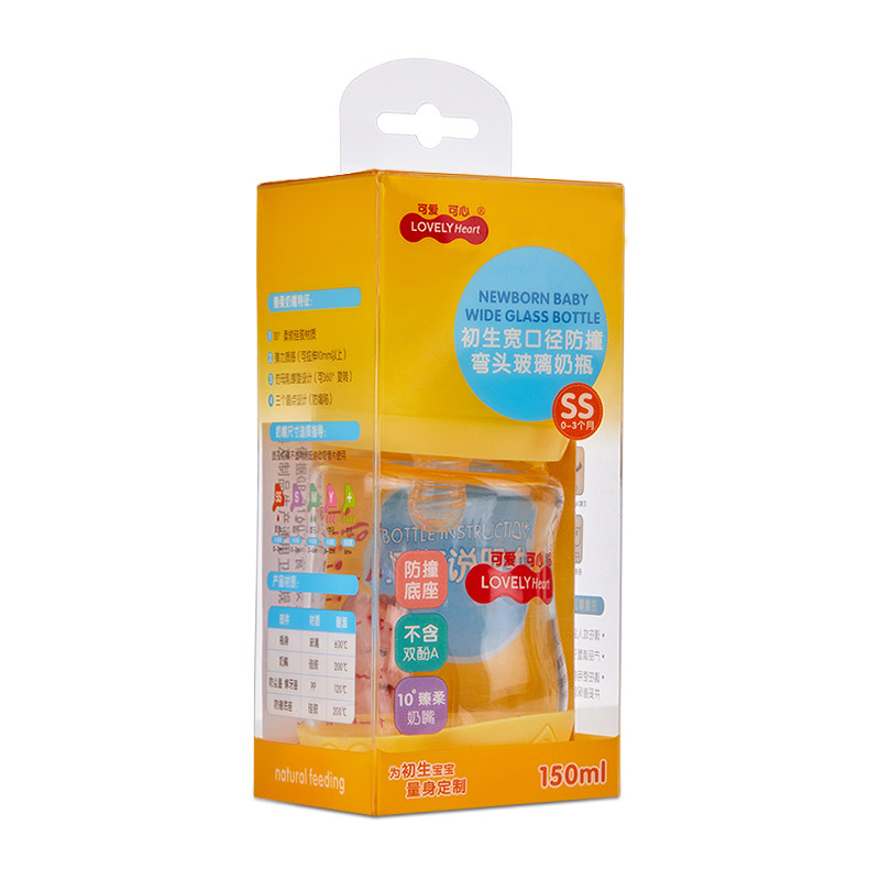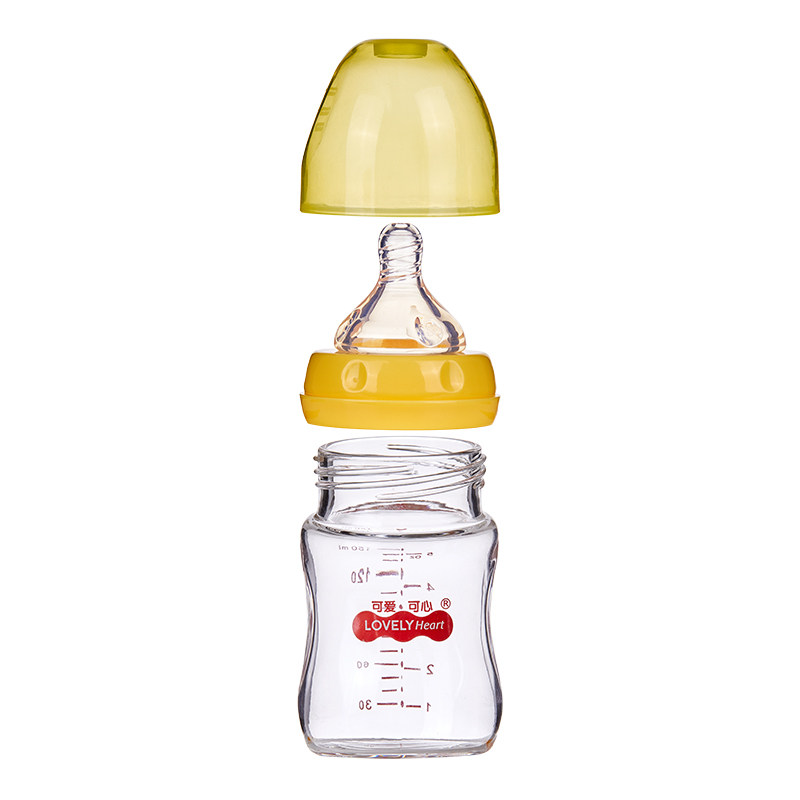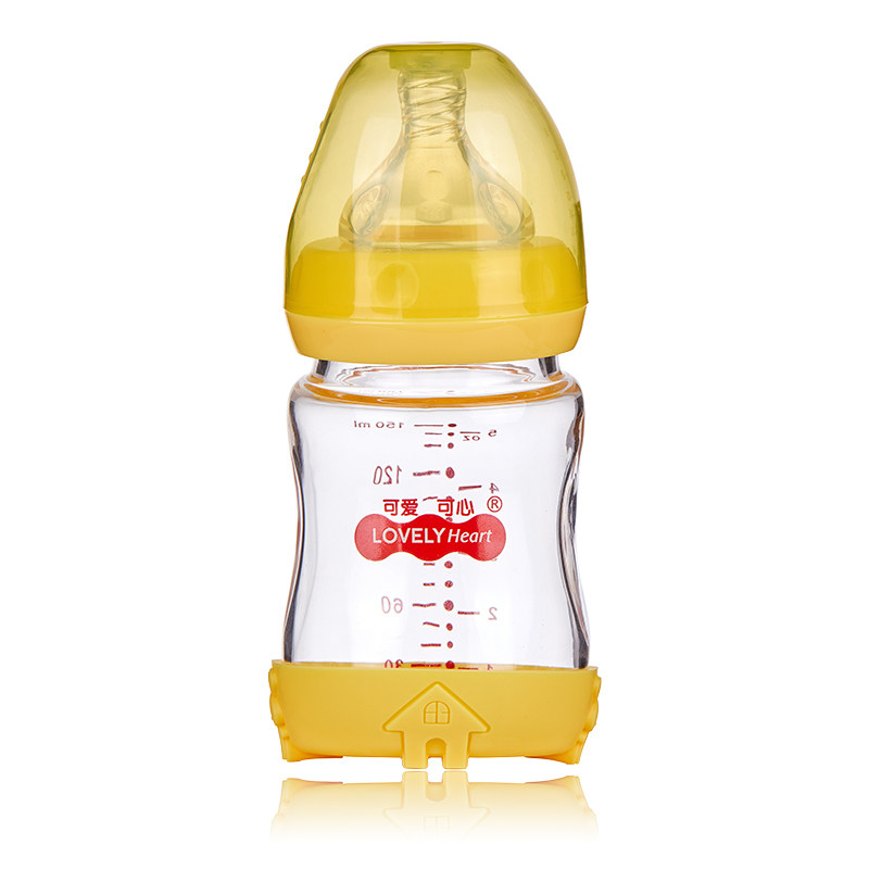 Cute and heart-warming newborn wide-caliber anti-collision elbow glass bottle 150ML