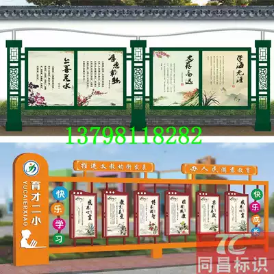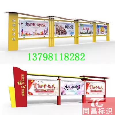 Wood grain paint Stainless steel party building propaganda bulletin board Socialist core values logo Guang spiritual fortress
