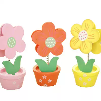 Creative small flowerpot wooden post-it notes clip business card holder wholesale flower styling decoration wooden small gift