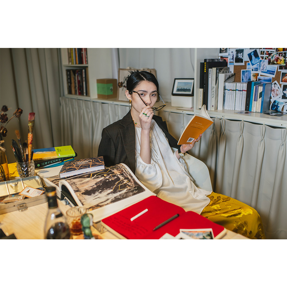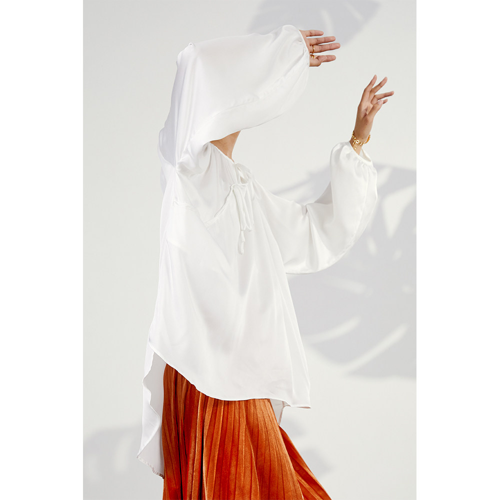 (Fashion Week) Lacquered Moon Designer White Lantern Sleeve Blouse Show Lace Satin Double-breasted Chinese Jacket