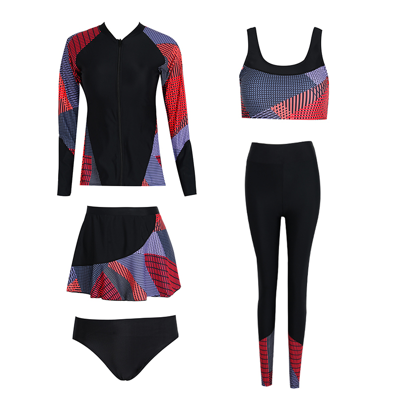 Large size swimsuit woman two-piece chubby mm200 catfish Belly Button Slim Conservative Long Sleeve Long Pants Spa Diving Suit Five Pieces