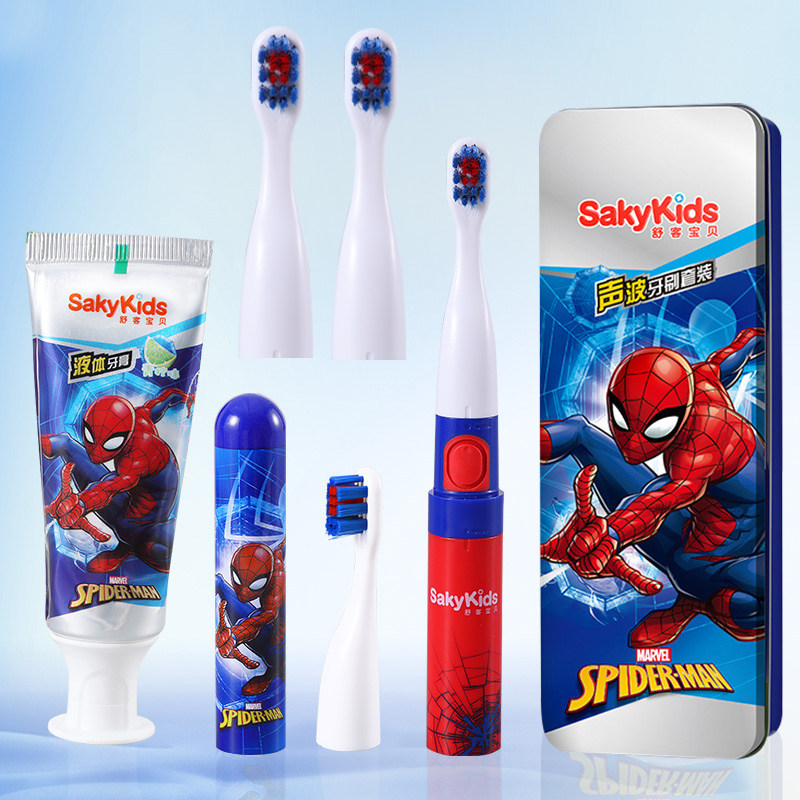 Crocodiles (1 brush handle 2 brushed heads 1 toothpaste) Sufia (1 brush handle 6 brushed heads 1 toothpaste) Spiderman (1 brush handle 6 brushed heads 1 toothpaste) Male Mickey high fit (charge